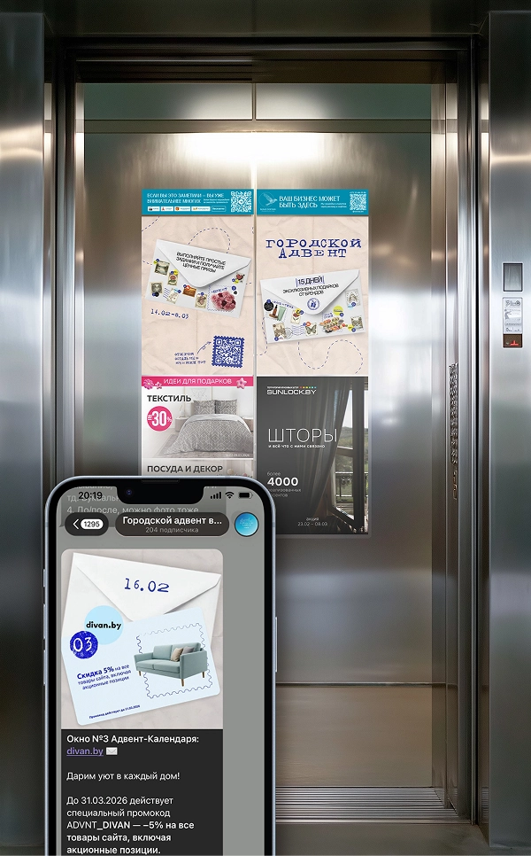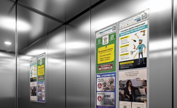 Собственные рекламные конструкции в лифтах, отсутствие налога на рекламу для клиентов и гибкие форматы размещения позволяют нам создавать спецпроекты под любые задачи бизнеса — от точечных локальных компаний до крупных брендов.